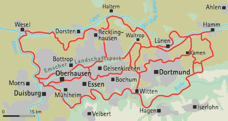 Fahren Sie in 20 Minuten über ehemalige Bahntrassen durch die Hinterhöfe des Ruhrgebietes zum Weltkulturerbe Zollverein oder über die spektakuläre Erzbahntrasse von Gelsenkirchen nach Bochum.